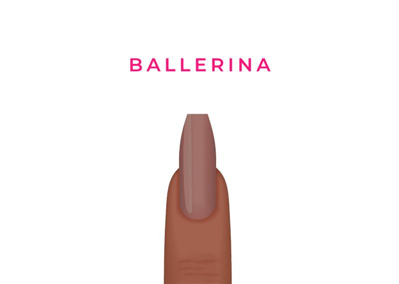 شاید به روزترین و جدیدترین مدلی که امسال در میان مدل ناخنهای پرطرفدار قرار گرفت همین مدل بالرینا است. به این شکل از ناخن مدل تابوتی نیز گفته میشود. همانطور که از فرم این مدل پیداست بسیار شبیه تابوت است. این مدل ناخن شکلی شبیه به مدل محبوب مربعی دارد اما کنارههای آن موازی نیست و گوشهها بیشتر شبیه به مدل بادامی است.